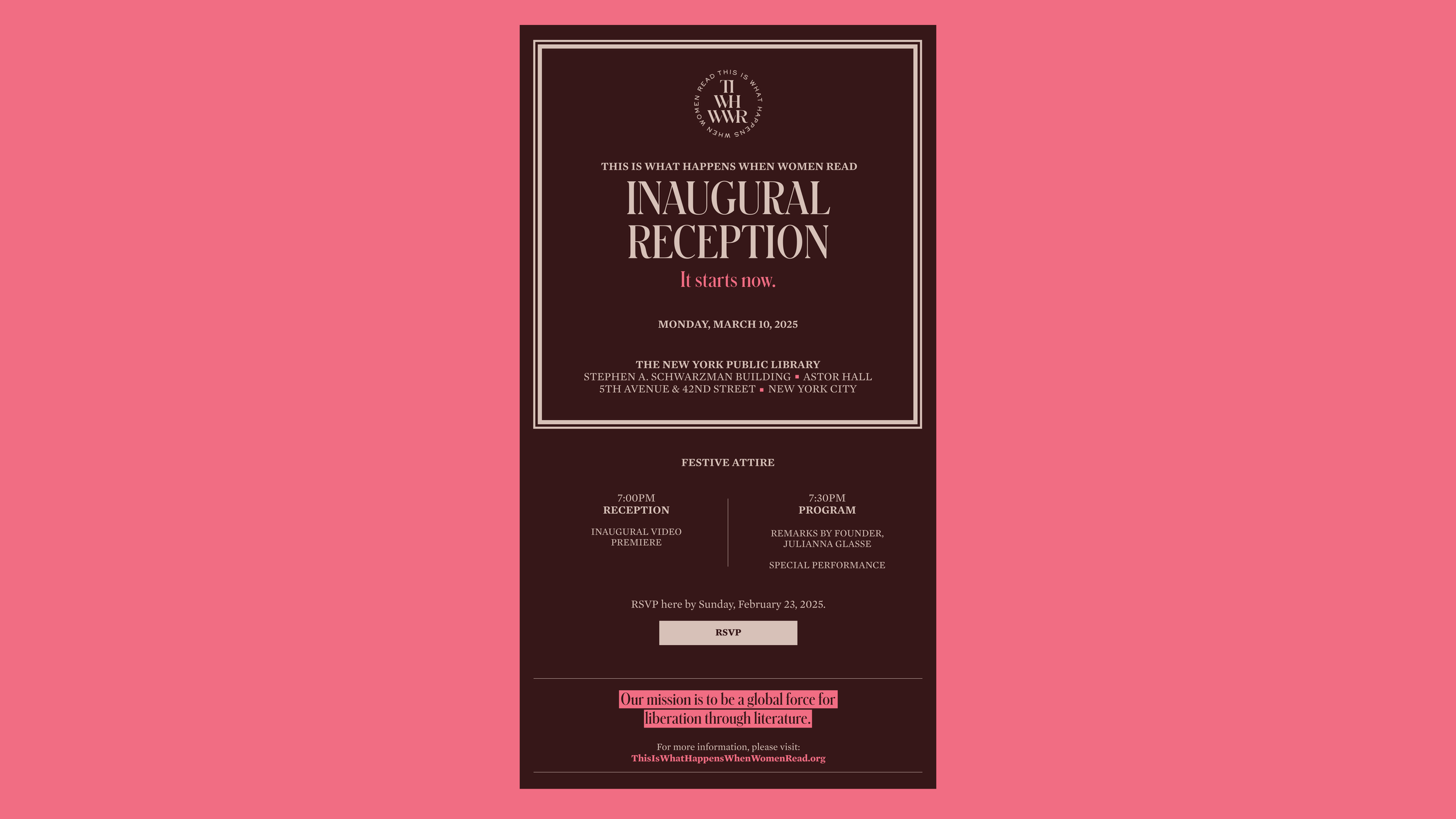 Digital invitation and print bookmarks in collaboration with the This is What Happens When Women Read founder and team.